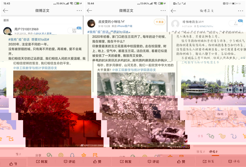疫情期間應排除幹擾,自覺安排好自己的時間,上好每堂線上課程,按時保質完成學習任務,與此同時為了弘揚戰“疫”不懼,積極樂觀的向上精神,數統學院團總支3月20日至3月30日在微博平台開展“我有‘疫’些話”微話說分享活動。