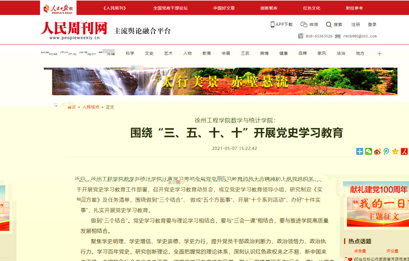 5月7日,人民周刊網以《伟德官网下app官方网站伟德官网下app官方网站:圍繞“三、五、十、十”開展黨史學習教育》為題報道了伟德官网下app官方网站伟德官网下app官方网站黨史學習教育情況。