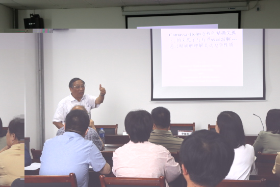 李繼彬教授做了題為“Camassa-Holm方程的精确尖孤子, 僞尖孤子與有界破缺波解-- 通過精确解理解其動力學性質”的報告。李教授介紹了研究尖孤子, 僞尖孤子的一般性方法。他指出,國外很多學者研究此類問題時研究方法的錯誤導緻了研究結論的錯誤,并由此勉勵大家批判性的閱讀國外文獻。