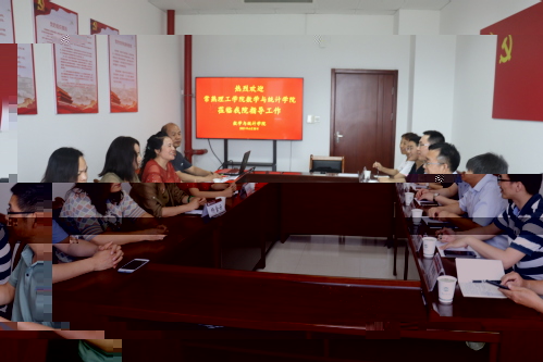 蘇有慧院長首先對吳月柱院長等同志一行表示歡迎,然後從學科競賽、專業設置、師資隊伍、學生培養等方面介紹了我院概況。吳月柱院長主要圍繞國家一流專業申請與建設、嵌入式專業人才培養方案制定、統計學學科建設、全國數學建模大賽、全國大學生市場調查與分析大賽等方面進行了深入交流。
