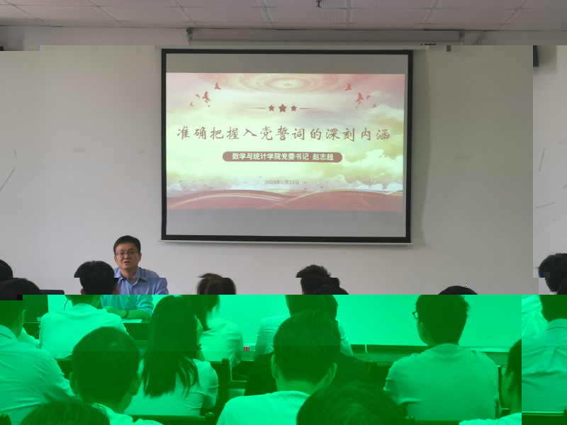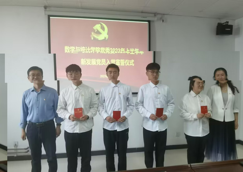 為深入學習貫徹黨的二十大精神,落實新時代黨的建設總要求,促進新接收預備黨員堅定理想信念、加強黨性修養,牢記黨員身份、發揮先鋒作用,按照發展黨員工作程序和相關規定,數學與統計學院5月23日上午,在敬業樓1501舉行了新接收預備黨員入黨宣誓儀式。儀式由學生黨支部書記茌攀主持,學院全體學生黨員、入黨積極分子和新接收的預備黨員參加了本次活動,學院黨委書記趙志超、副書記呂楠參加了宣誓儀式。