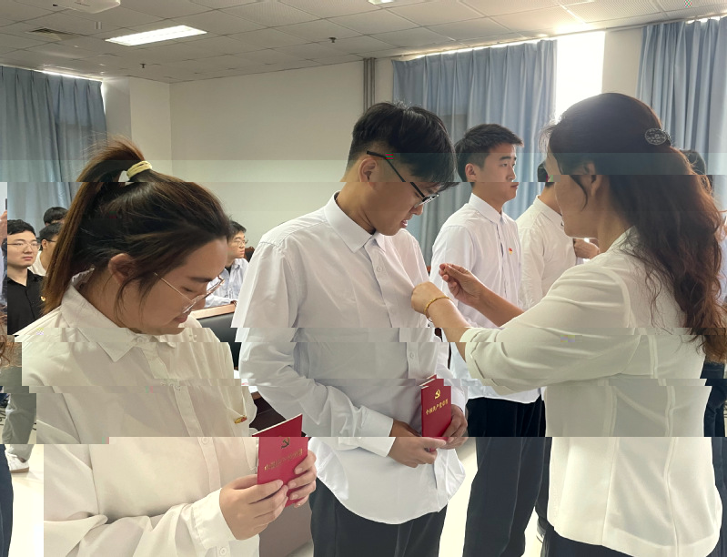 大會在莊嚴的國歌聲中拉開序幕。學生第黨支部書記茌攀代表學生黨支部委員會向新接收的預備黨員表達了衷心的祝賀和熱切的期望,學院黨委書記趙志超、副書記呂楠為新接收的預備黨員佩戴黨徽、贈送《中國共産黨章程》。新接收的預備黨員面向鮮紅的黨旗莊嚴宣誓,老黨員重溫入黨誓詞,他們舉起右手,在輔導員季如老師的領誓下,莊嚴宣誓,宣誓過程莊嚴凝重,深切表達了新接收的預備黨員對黨的無限忠誠和為黨的事業奮鬥終身的堅定信心和決心。