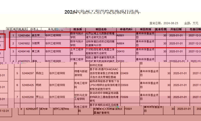 近日,國家自然科學基金委員會公布了2024年度的國家自科基金立項情況,我院劉若男老師申報的《澱粉樣蛋白成核過程的随機建模與分析》和顧東琴老師申報的《無界區域上幾類新的有理譜方法研究及應用》獲批青年科學基金項目立項。