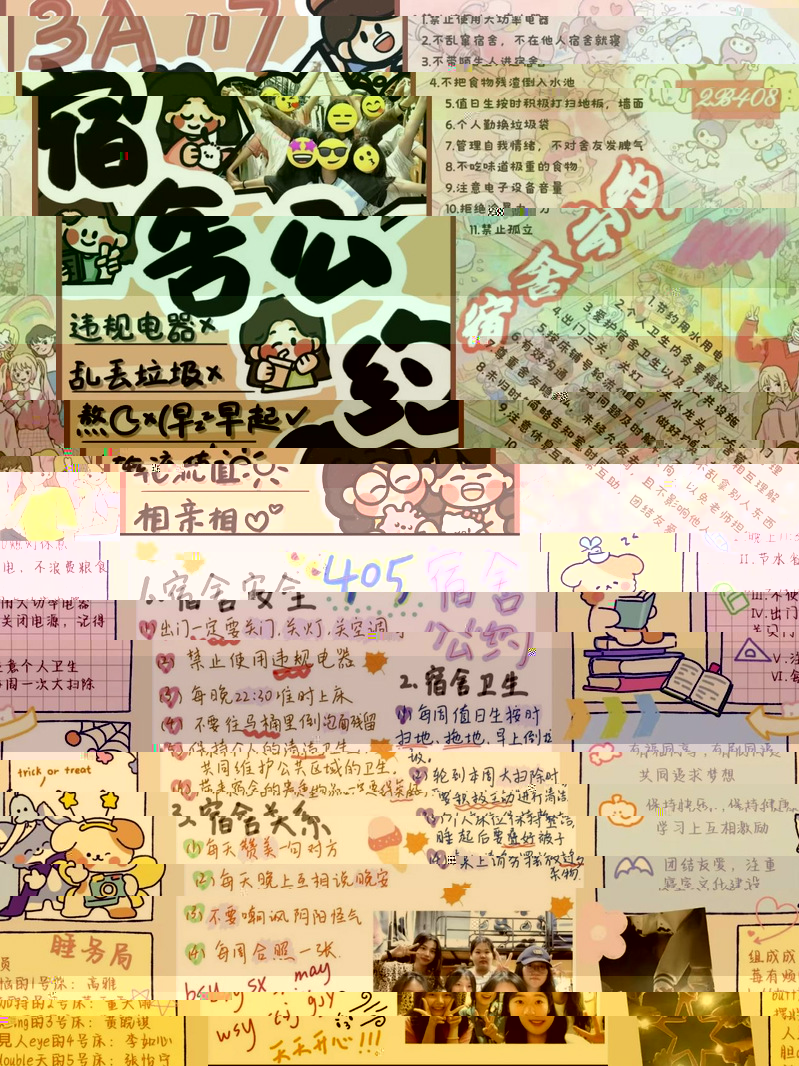 此次活動以宿舍為單位,旨在通過制定宿舍公約,加強學生之間的溝通與交流,增強宿舍的凝聚力和向心力,共同打造溫馨、健康、和諧、友愛的宿舍生活環境。活動一經發布,受到了同學們的廣泛關注,各寝室成員積極參與,通過集體讨論,圍繞宿舍安全、衛生、作息、隐私等方面展開讨論。卡片制作過程中,同學們充分發揮自己的創意與想象力,通過手繪、電腦設計等多種方式,制作出一張張精美實用、各具特色的卡片作品。這些作品設計新穎、美觀大方,不僅展現了同學們相互尊重、相互理解的良好品質,更傳遞出他們對于宿舍生活的熱愛和向往。